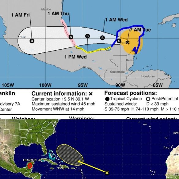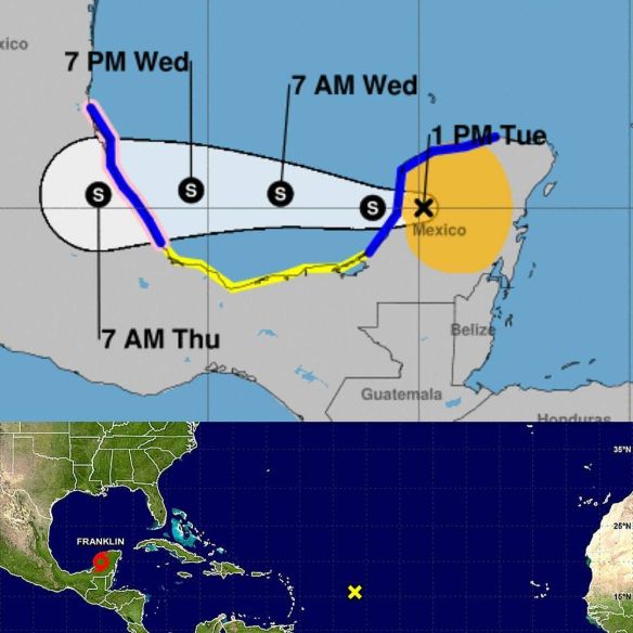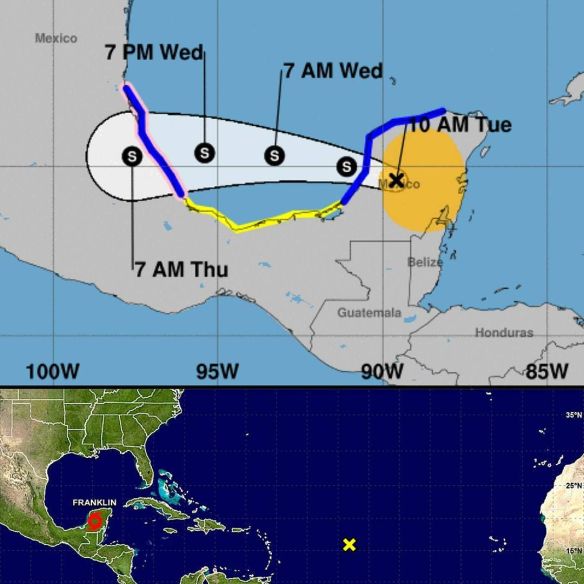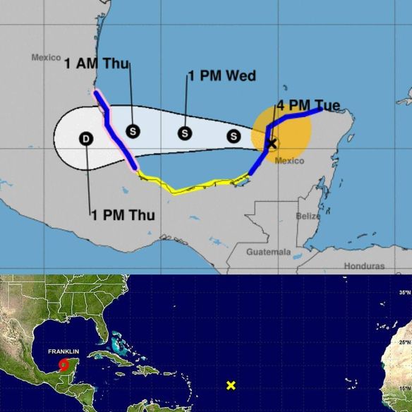 Tormenta tropical Franklin 16:00hrs. Vientos sostenidos de 65km/h Moviéndose a 20km/h Posted on August 8, 2017 by Frank Cisco via Instagram http://ift.tt/2vjSIMY